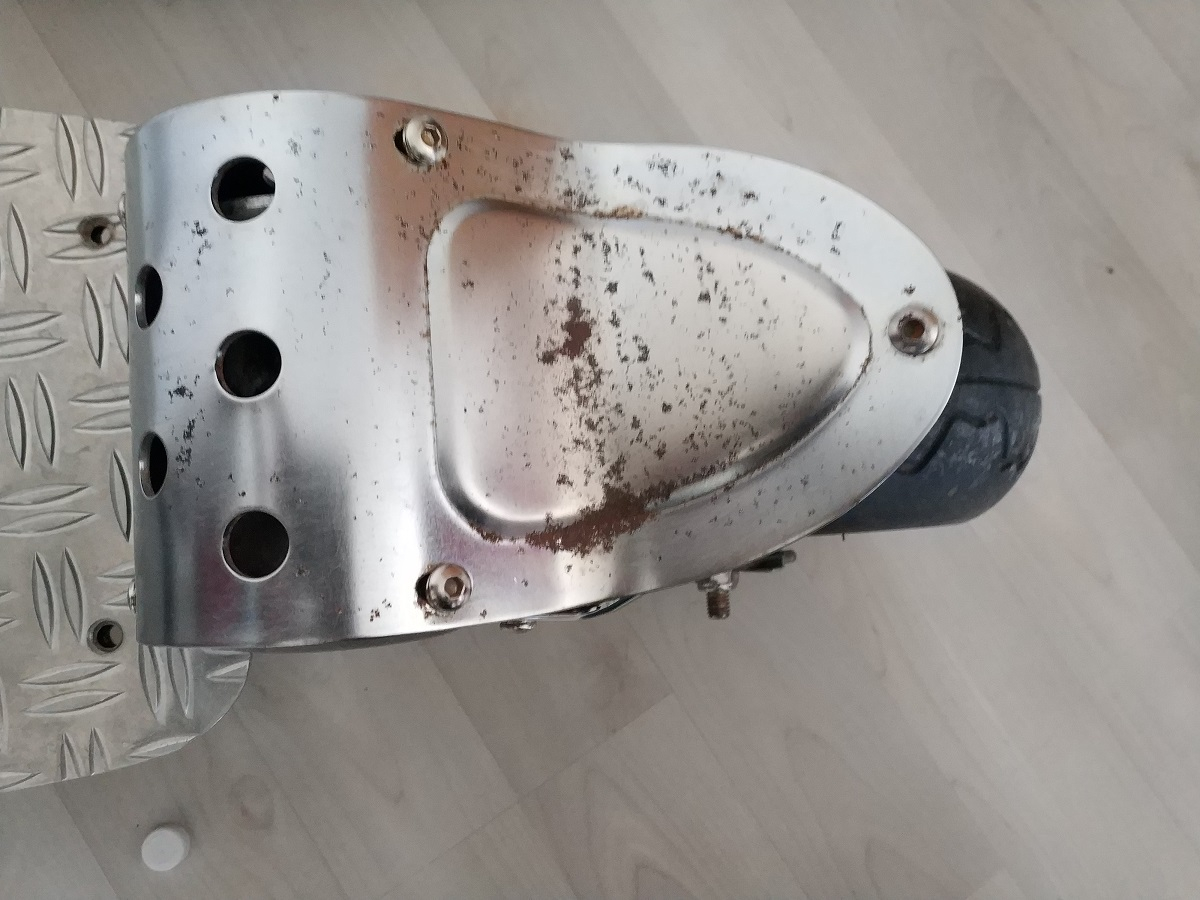 Bei der Farbe bin ich mir noch nicht sicher. Vielleicht schleife ich den Scooter nur an und lackiere ihn wieder Schwarz aber auch eine neue Farbe würde mich reizen. Vielleicht Grün oder Rot.....