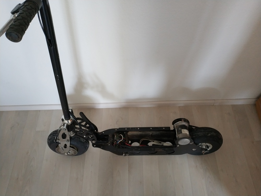 Die Elektronik von dem Scooter funktioniert. Ist 24v mit 450 Watt (Blei Batterien) . Also eher doch etwas schwach und auch hier überlege ich mir, ob ich hier nach dem Optischen Umbau das ein oder andere ändere.