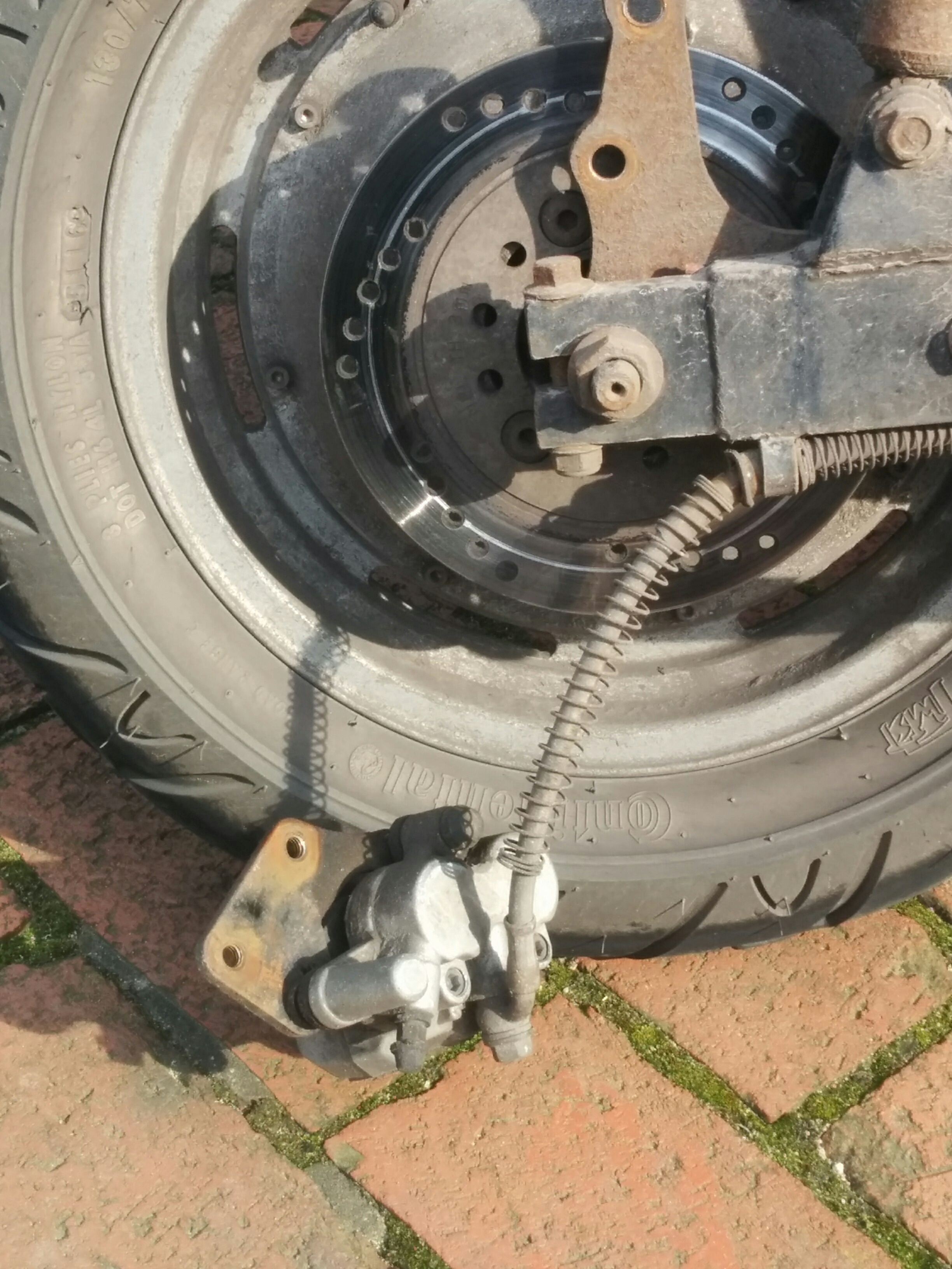schraubt bloß eure Bremsanlagen wieder richtig fest und kontrolliert nach einer Weile die Schrauben, wenn ihr da was dran gemacht habt, sonst geht es euch so wie mir heute. Zum Glück war das 150m vor zuhause :shock: