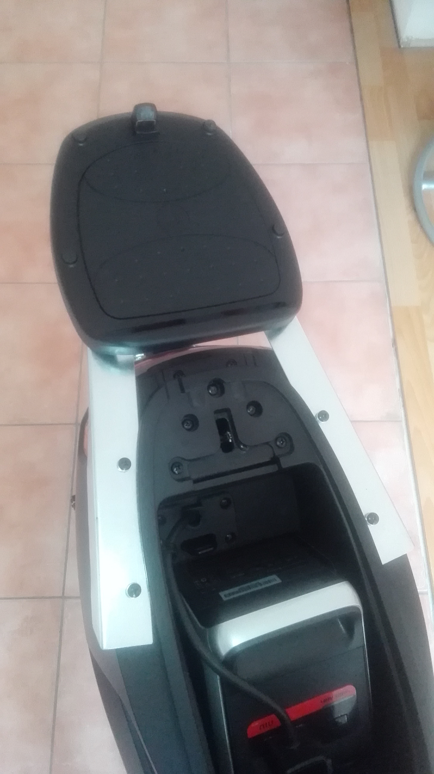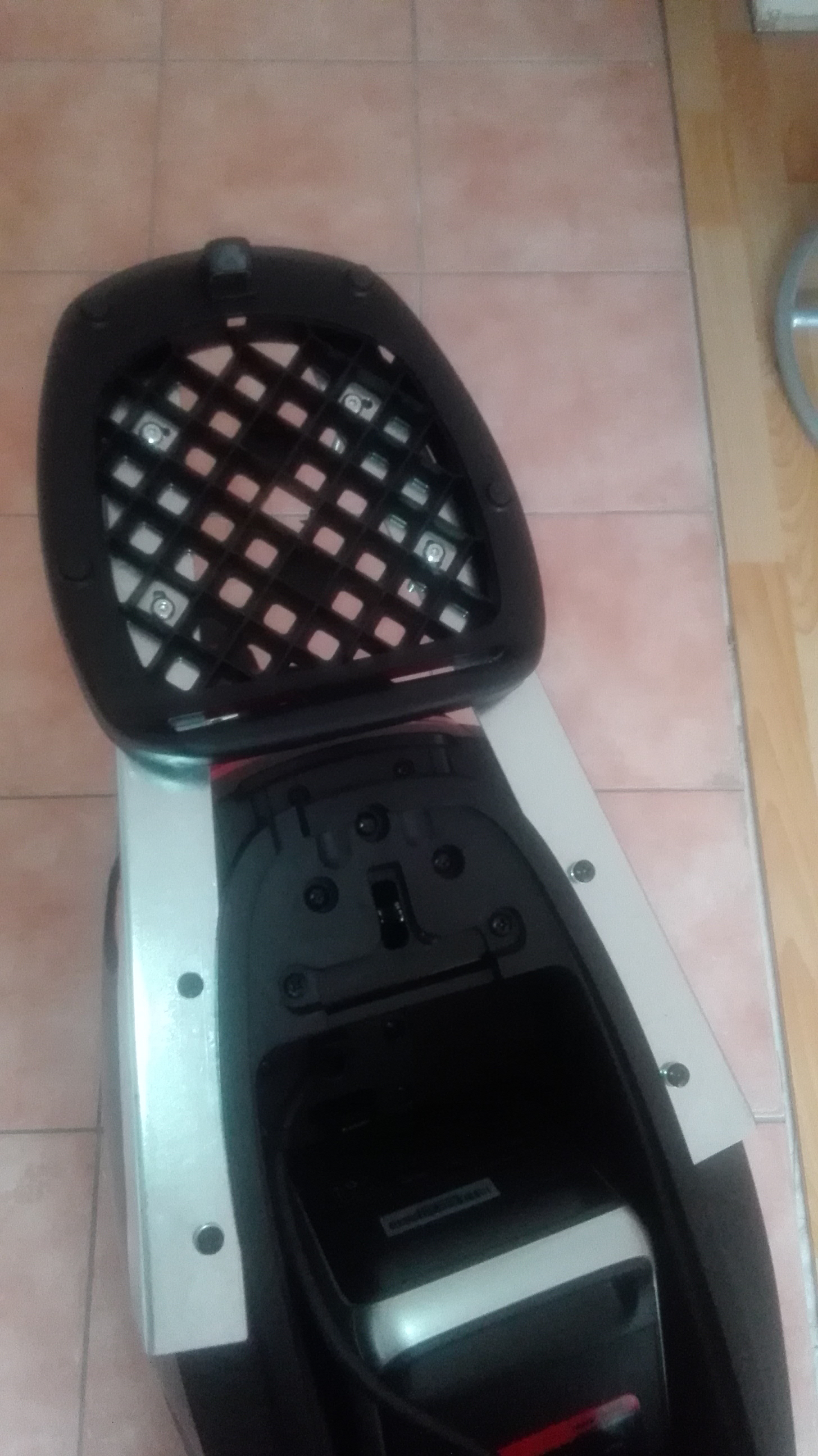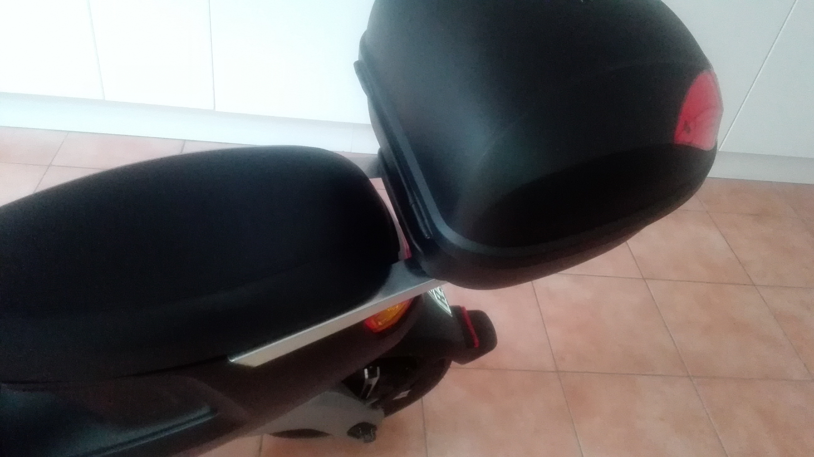 Top Case ist dieser hier. Passt sogar ein Integralhelm rein, hat aber nur 27l und ist nicht zu wuchtig für den Kleinen. Kostet auch nur 22 Euro und ist auch nicht schlechter als die teuren Givis.