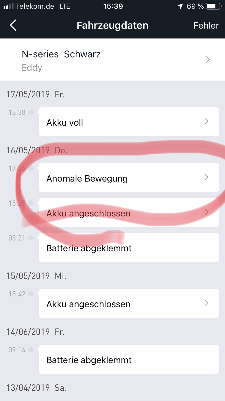 Heute habe ich 2x den unbefugten Bewegungsmelder in der Niu App erhalten, das waren die Momente, in denen ich 2x Überfahrten mit der Fähre machte (ca. 500 Meter pro Überfahrt).