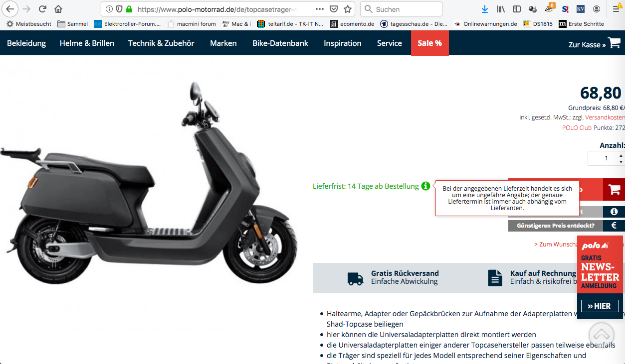 Vor allem wenn man das Kleingedruckte liest. Sowohl Polo als auch Shad mauern und bei den ebuy7-Angebot kann man nicht sicher sein, ob mit „Original“ nicht das NIU-Original statt dem Shad-Original gemeint ist und dann wäre der Preis inkl. Versand und zu erwartender Steuer/Zoll höher als wenn man hier im Handel den NIU-Träger erwirbt.