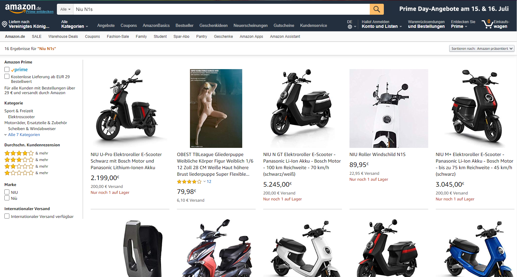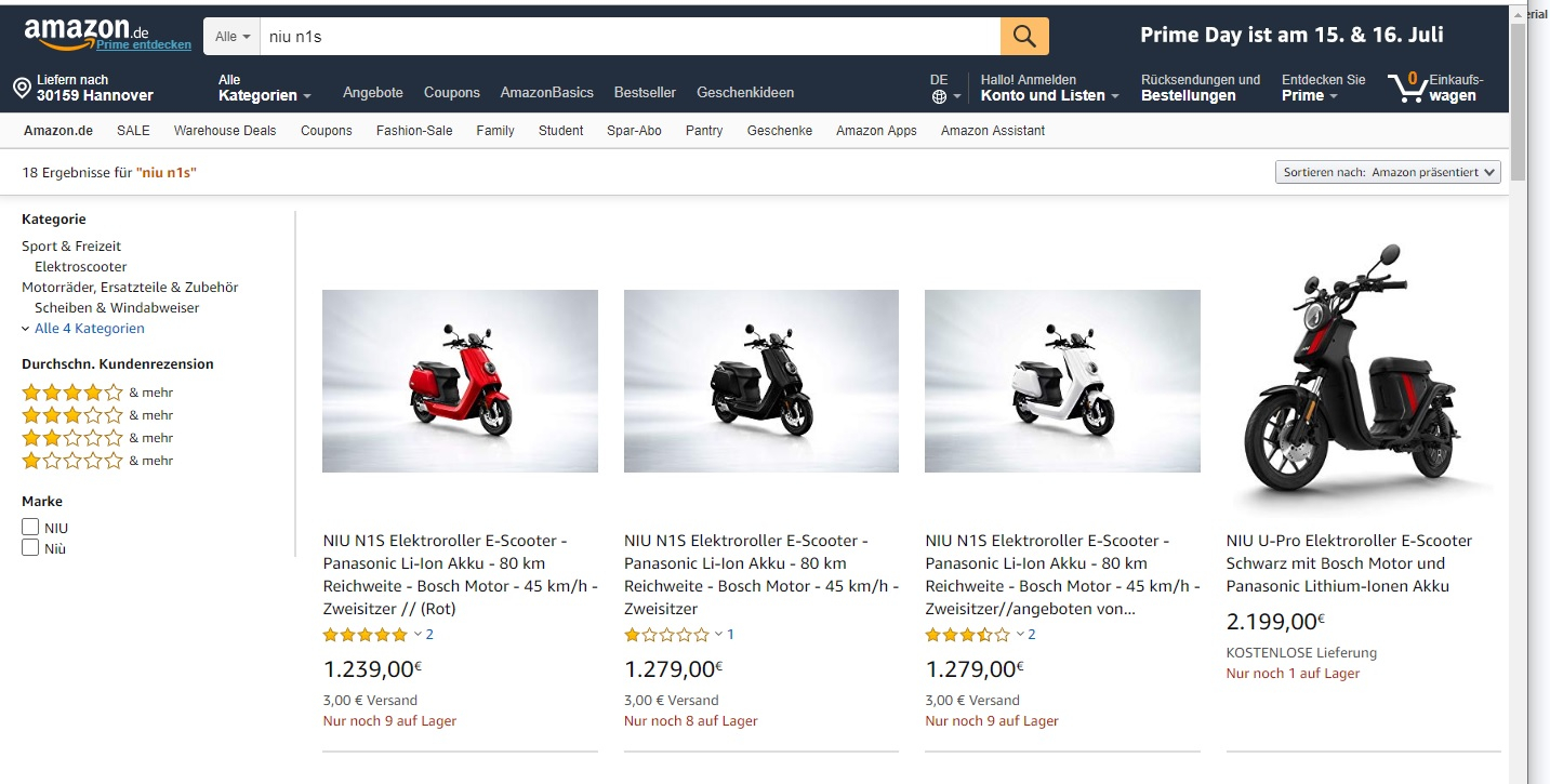 Bei mir werden sehr interessante Artikel anzeigt wenn ich nach Niu N1s suche