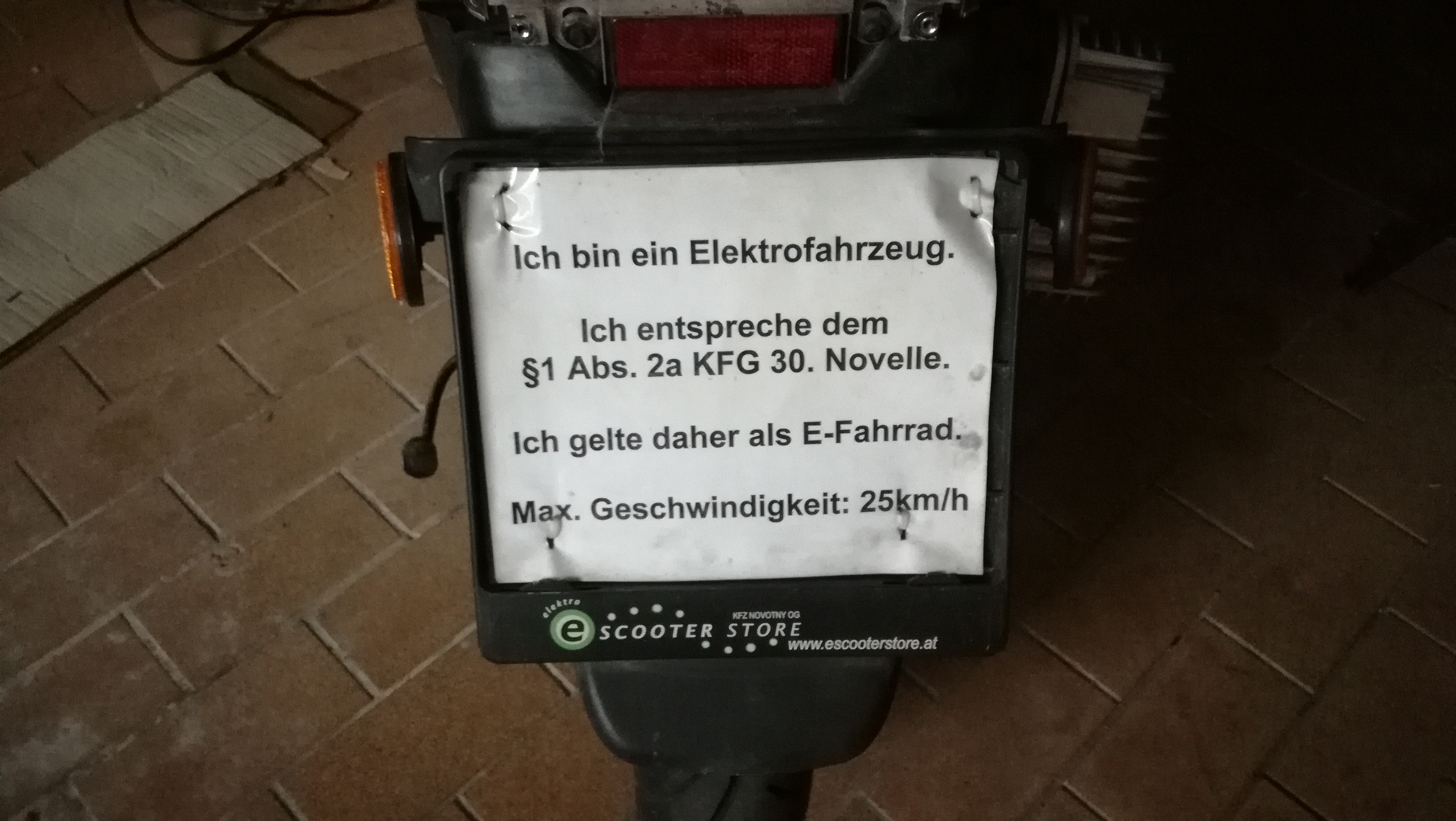 Habe zwei scooter von io, einen mit papieren mit 45km/h und einen mit einem kärzchen hinten drauf, dass dies ein elektro fahrrad ist. Das kärtchen ist von escooterstore.at