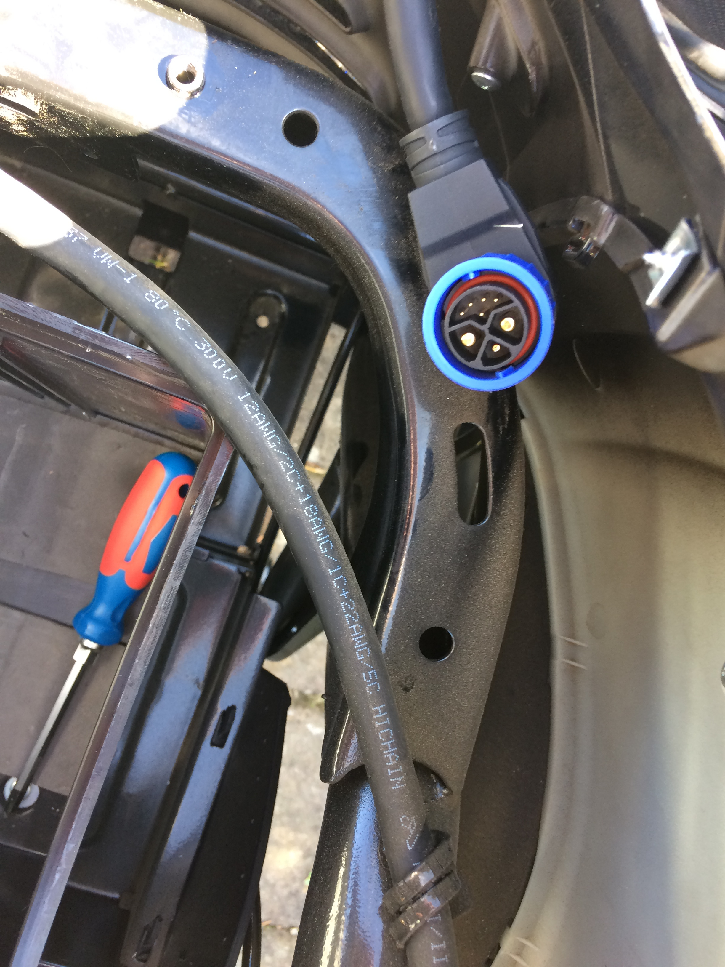- Die dicken Pins 1 "Plus" und 2 "Minus" sind die 60V Spannungsversorgung des Rollers.